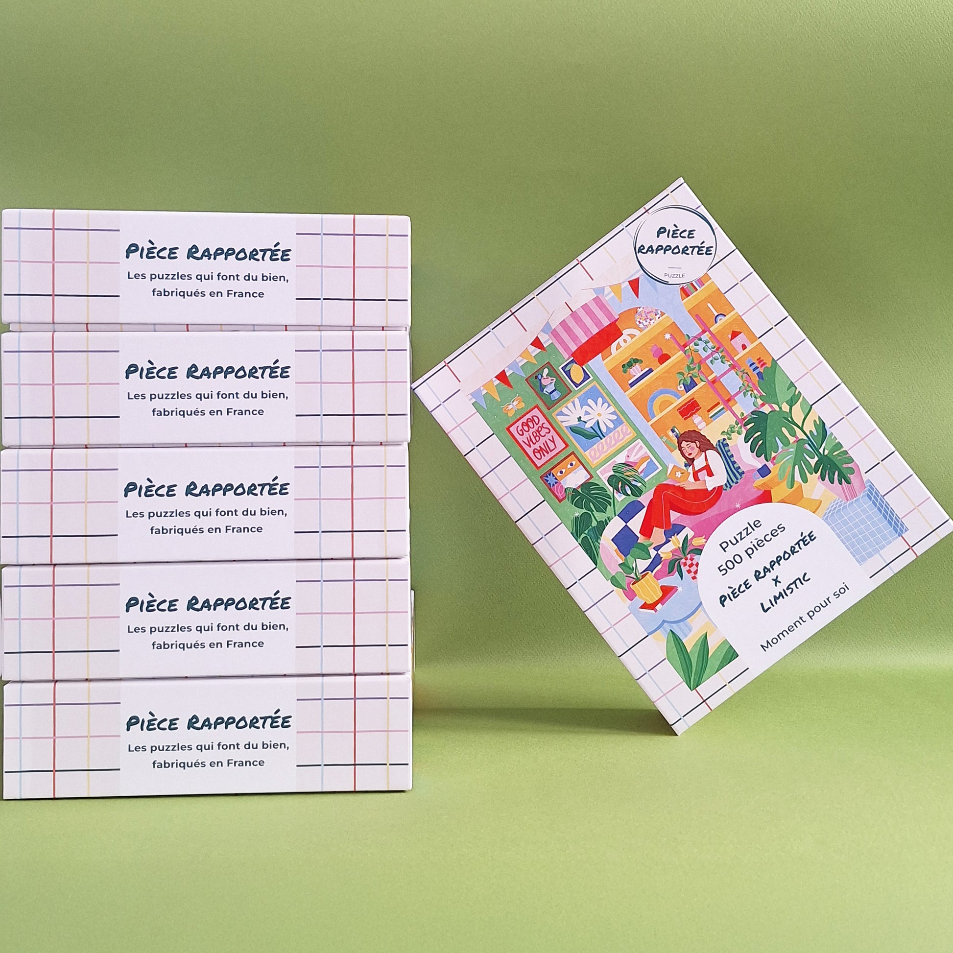 Puzzle 500 pièces fabriqué en France avec finition soft touch. Limistic imagine un salon cosy et coloré où l’on déconnecte, on rêve et on s’offre un vrai moment pour soi, plein de douceur et de détails.